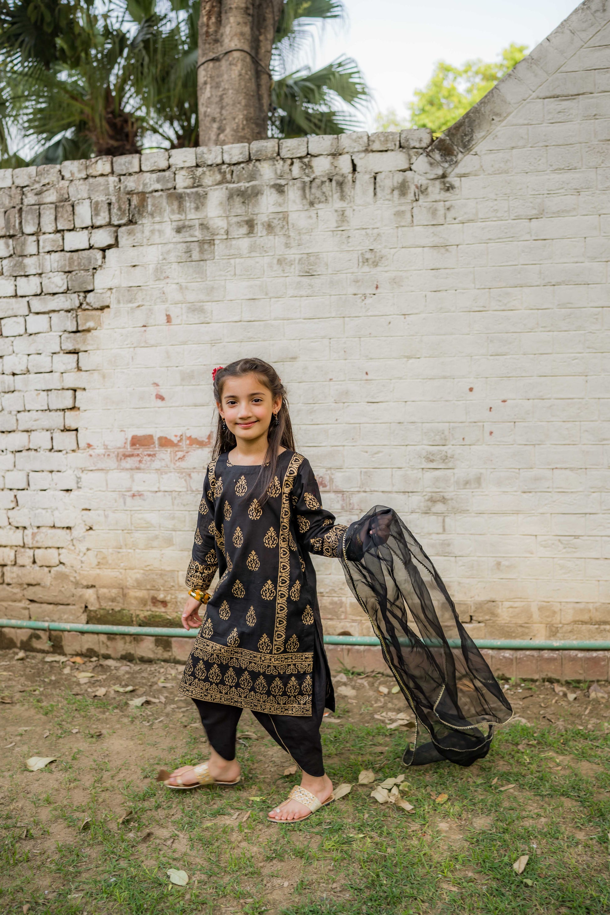 Black and gold block-printed design